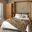 Aber das Design sieht sehr stilvoll und interessant aus. In normalen Zeiten ähnelt es einem Standardbett, aber am Nachmittag kann es in einer speziellen Nische angehoben und versteckt werden. Danach wird es wie ein Schrank aussehen.Dieses Modell ist sehr bequem und einfach zurückklappbar.