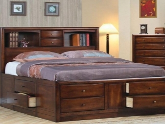 Meistens befinden sich in solchen Modellen die bequemen Schubladen unten. Sie können verwendet werden, um Bettwäsche, Gegenstände, die nicht aktiv benutzt werden, oder alte Kleider zu falten. Wenn Sie ein solches Bett haben, müssen Sie nicht zusätzlich eine Kommode oder einen großen Schrank in Ihrem Zimmer installieren, um all diese Dinge zu speichern.