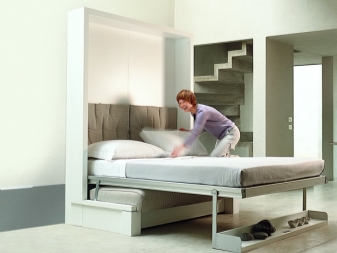 Die Besitzer der kleinen Wohnungen versuchen in der Regel, sich die kompaktesten Möbel zu wählen. Für eine kleine Wohnung ist es einfach eine Notwendigkeit, mit der Sie mehr freien Platz sparen können. Multifunktionale, transformierte Betten, wenn sie gefaltet sind, benötigen viel weniger Platz. Und faltbare Modelle geben den gesamten Raum frei.
