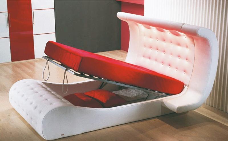 Ein transformierendes Bett ist jedoch nicht immer ein faltbares Modell oder Produkt, das in eine vertikale Position übersetzt werden muss. Das Multifunktionsbett kann nach einem anderen Prinzip arbeiten. Die Unterseite des Bettes kann als ein Ort verwendet werden, um Dinge zu lagern. Dies macht es auch funktioneller.