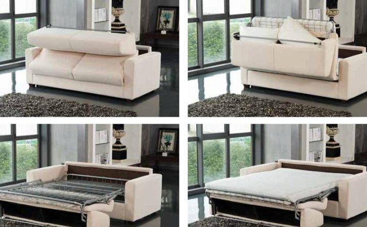 Eine Vielzahl solcher Möbel ist ein Bett mit einem Mechanismus "Akkordeon". Es ist einfach in einer einfachen Bewegung zu falten und zu entfalten.
