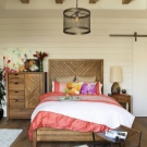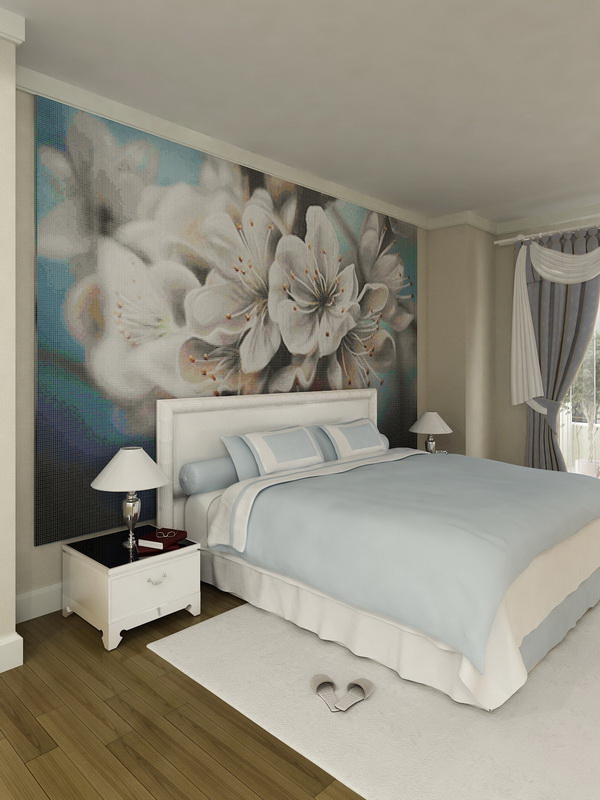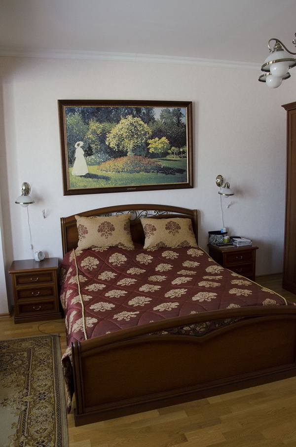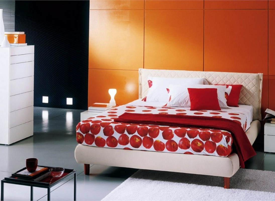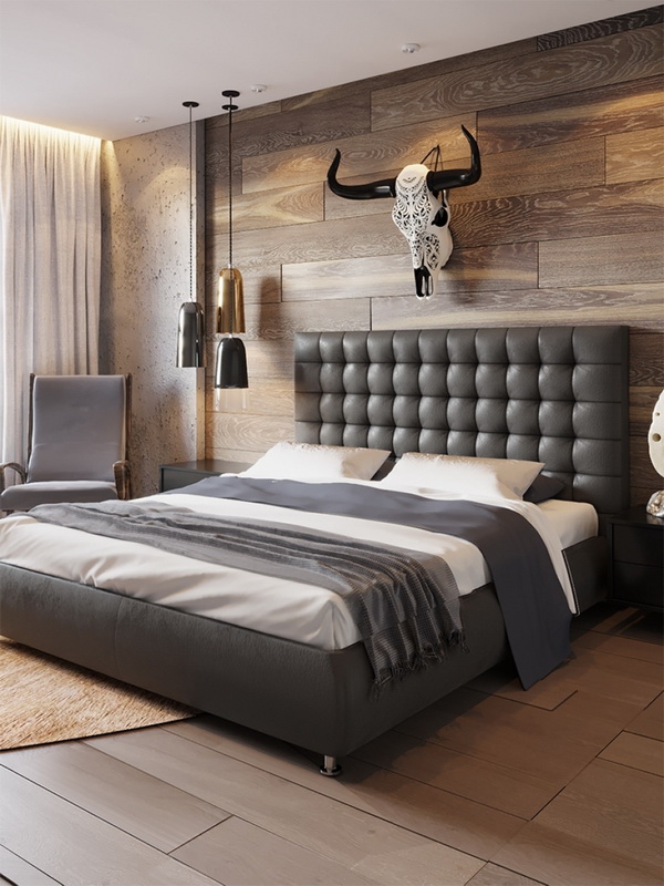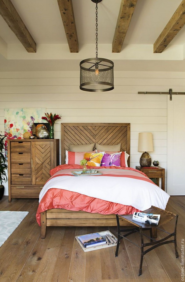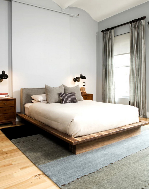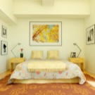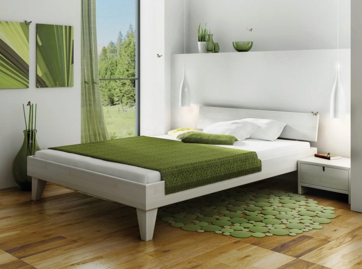 Wenn Sie die Farbe der Möbel wählen, können Sie sich auch auf die Farbe des Bodens konzentrieren. Wenn die Farbe des Fußbodens mit der Farbe des Kopfteils übereinstimmt, wird ein sehr interessanter Effekt erzeugt, der zu übermäßig scharfe Ecken des Bettes glättet. Derselbe Effekt ermöglicht es, die Wahl der Farben im selben Farbbereich zu erreichen. Zum Beispiel, wenn der Boden einen rötlichen Farbton hat, dann kann das Bett eine rötliche Tönung haben.