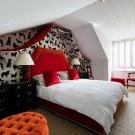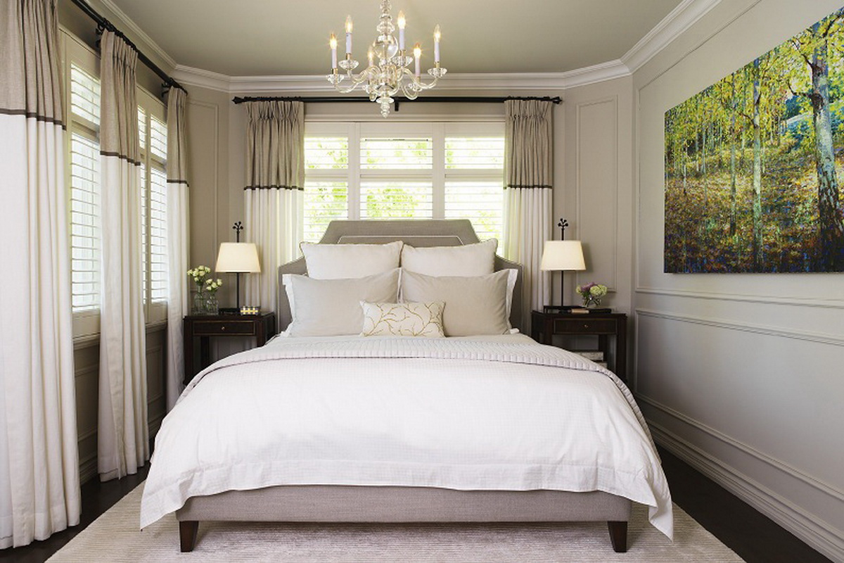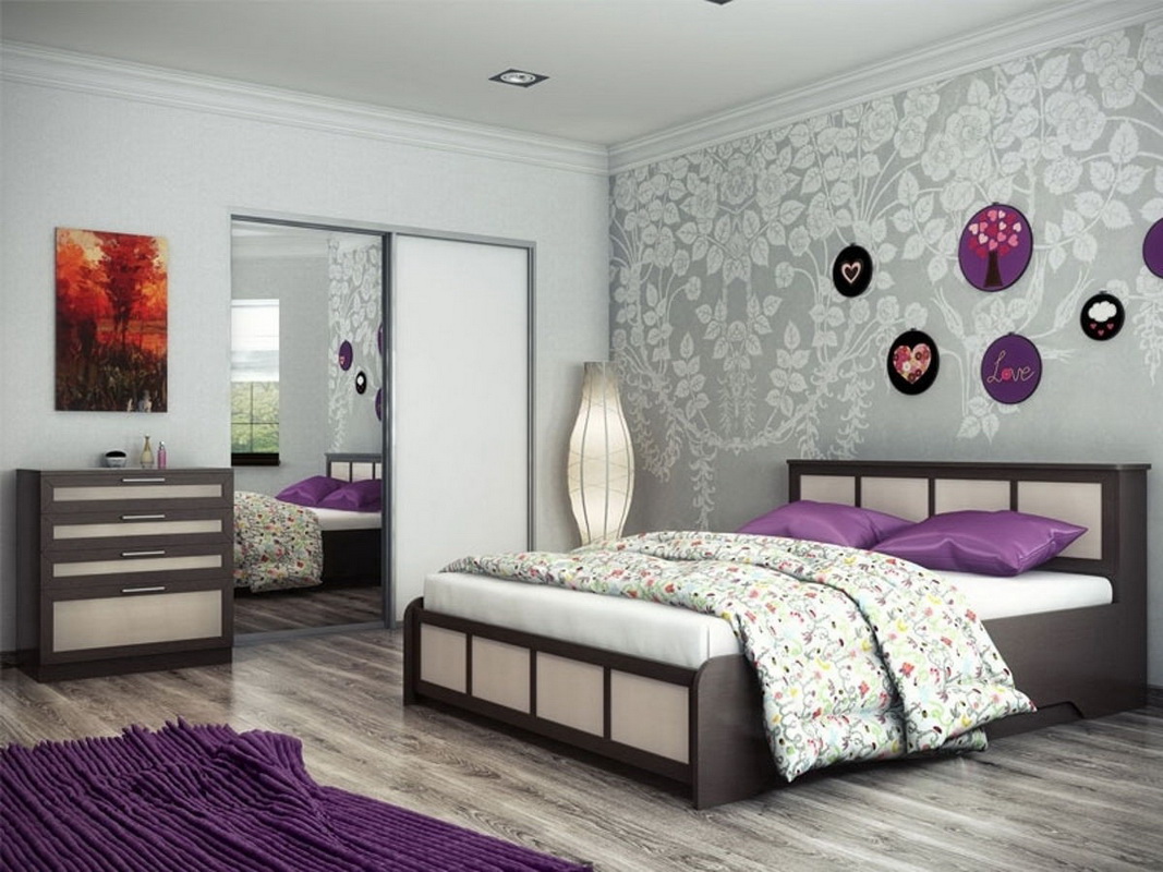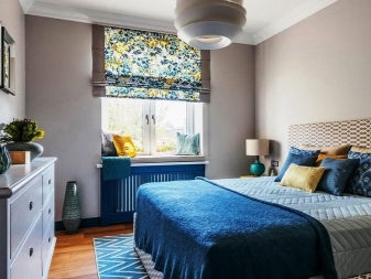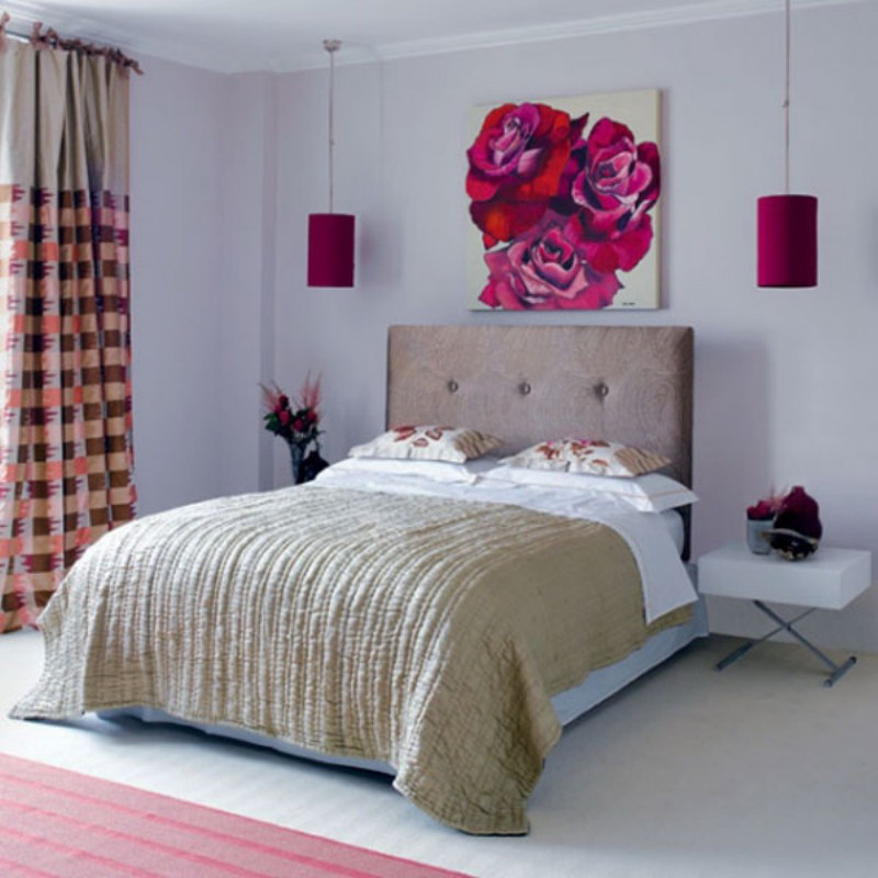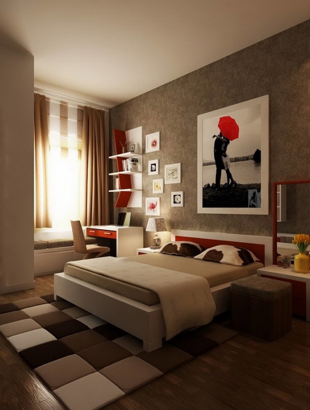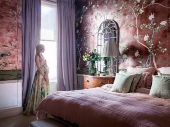 Der einfachste Weg, um eine Farbe zu wählen, ist "Spielen mit Kontrast". In diesem Fall wird die Farbe der Wände und des Rahmens einander gegenübergestellt. Eine hervorragende Option wäre zum Beispiel ein dunkles schokoladenfarbenes Bett in Kombination mit einer milchigen Tapete. Darüber hinaus können Möbel ein heller Akzent im Innenraum sein, zum Beispiel, eine rote oder lila Kopfteil ist eine gute Möglichkeit, eine helle Nuance zu schaffen, und wenn Sie Vorhänge oder einen Teppich in Farbe hinzufügen, wird das Schlafzimmer noch beeindruckender aussehen.