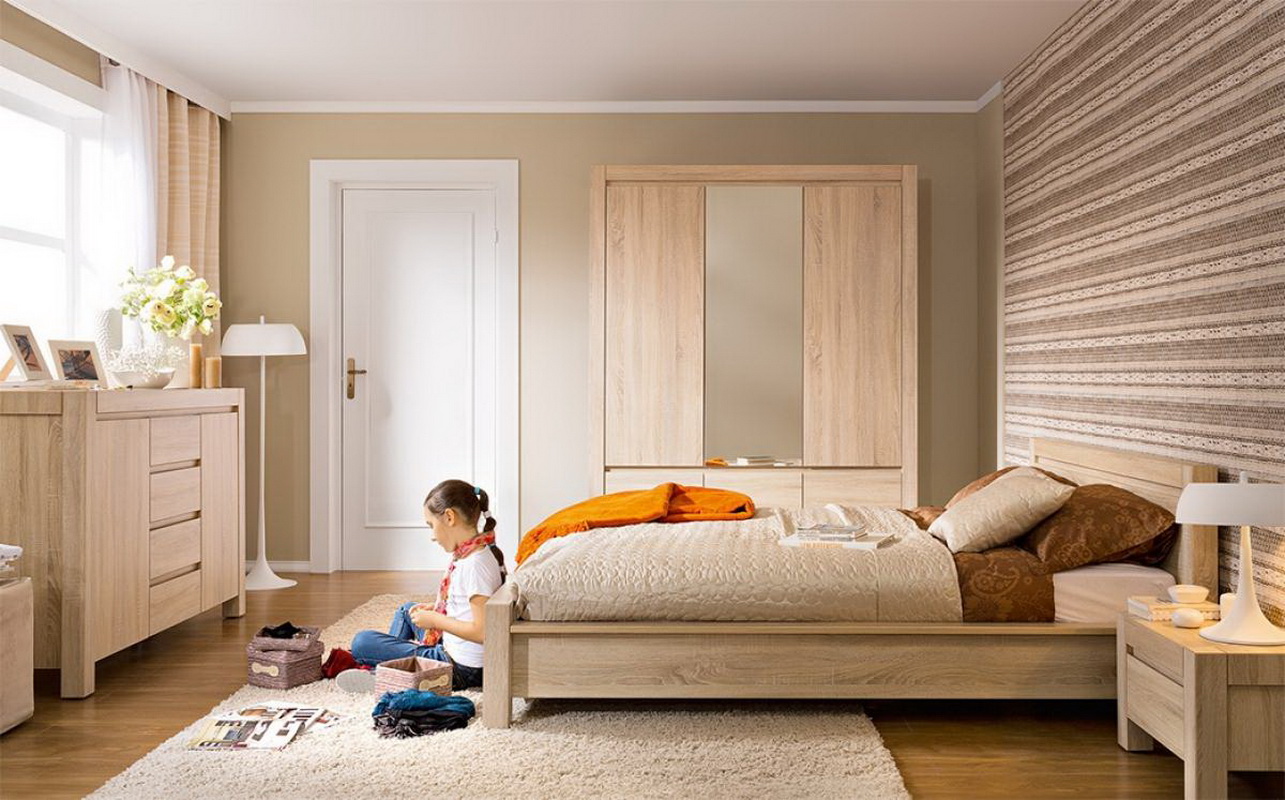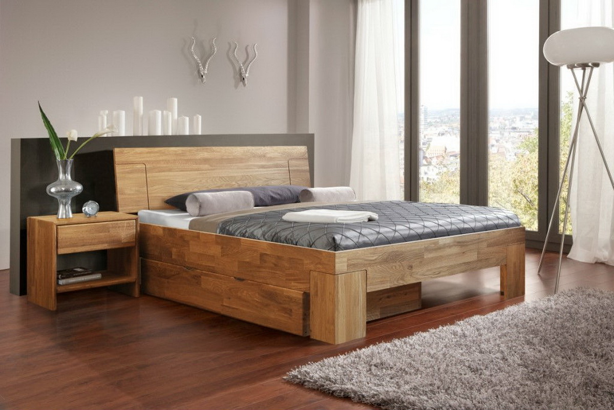 Auch ein langes Bett und ein Bett mit einer Basis aus massivem Holz, zum Beispiel aus Kiefer - ist ein hypoallergenes Material, das auch eine sehr schöne Holzstruktur hat. Sie können jede Farbe wählen, heute stellt jeder Hersteller ein Minimum an Farben von Holzpaneelen zur Verfügung, aus denen die Möbel bestehen. Dazu gehören: Eiche, Erle, Walnuss, Kirsche, Kastanie, Wenge. Zusätzlich können die Schattierungen dieser Primärfarben dargestellt werden, so dass die Wahl der gewünschten Farbe nicht schwierig sein wird.
