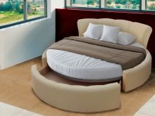Für Avantgarde-Fans gibt es auch sehr interessante Möglichkeiten. Im Internet gibt es sogar ganz runde Betten. Sie haben ein dünnes Bein, ähnlich einer Glasform. Ein solches Bett in einer vertrauten Wohnung ist schwer vorstellbar. Wenn Sie jedoch darüber nachdenken, ist die Entscheidung sehr interessant.