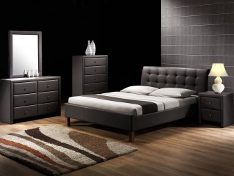 Entscheiden Sie sich, ein Bett aus Öko-Leder zu kaufen, sollten Sie auf die Gesamtsituation in der Wohnung achten: Welche Farbe herrscht darin, welcher Stil, welche Materialien sind am häufigsten anzutreffen. Wenn Ihr Zimmer komplett mit Holz ausgekleidet ist, sollten Sie in diesem Raum kein Chrombett mit Strasssteinen anbringen. Aber die klassischen Bettmodelle eignen sich auch für eine Wohnung, deren Oberfläche der sowjetischen Zeit entspricht.
