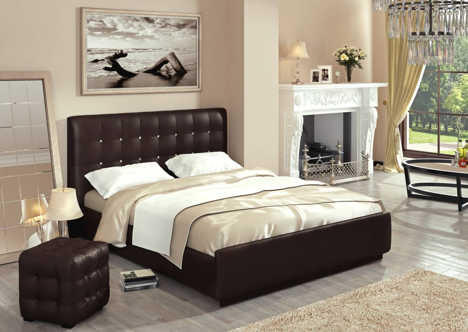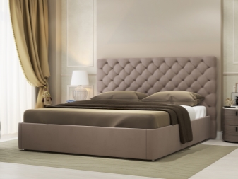 Der Vorteil solcher Betten ist, dass das teure Material in ihnen viel weniger ist, sie billiger sind, was bedeutet, dass sie erschwinglicher sind, ohne aufzuhören, einfach luxuriös zu sein. Die Polsterung kann glänzend oder matt sein, dann ähnelt sie einem Stoff. Die Oberfläche kann mit geprägtem, gemustertem, vielleicht klassischem und im modernen Stil - oder sogar mit Strasssteinen - verziert werden. All dies ist auf Lager verfügbar.