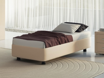 Im Sortiment gibt es auch Betten mit einem mit Leder bezogenen Kopfteil. In solchen Betten gibt es immer eine orthopädische Matratze. Es verhindert das Verrutschen und Rollen von Wäsche, einfach zu bedienen und einfach zu ersetzen.