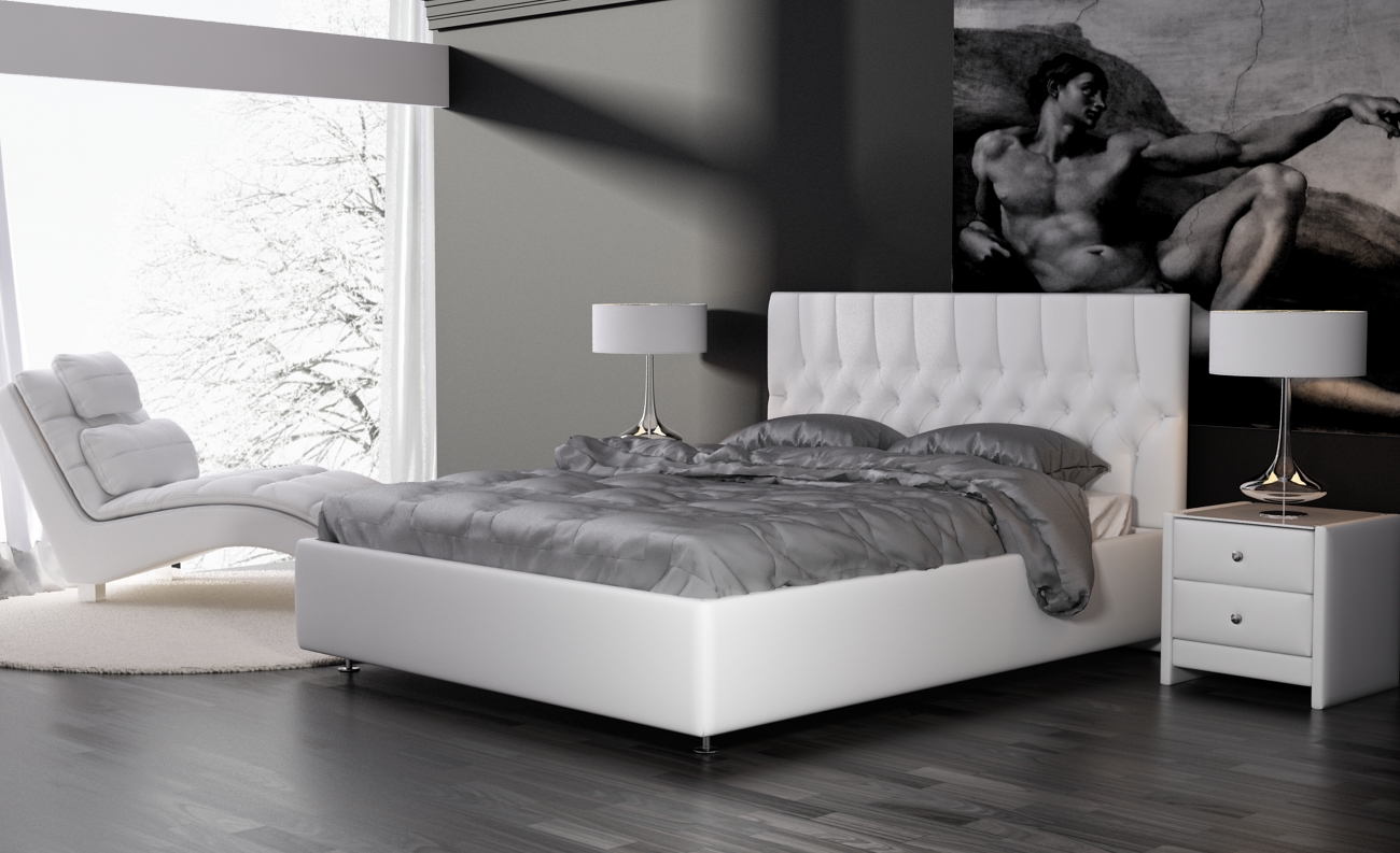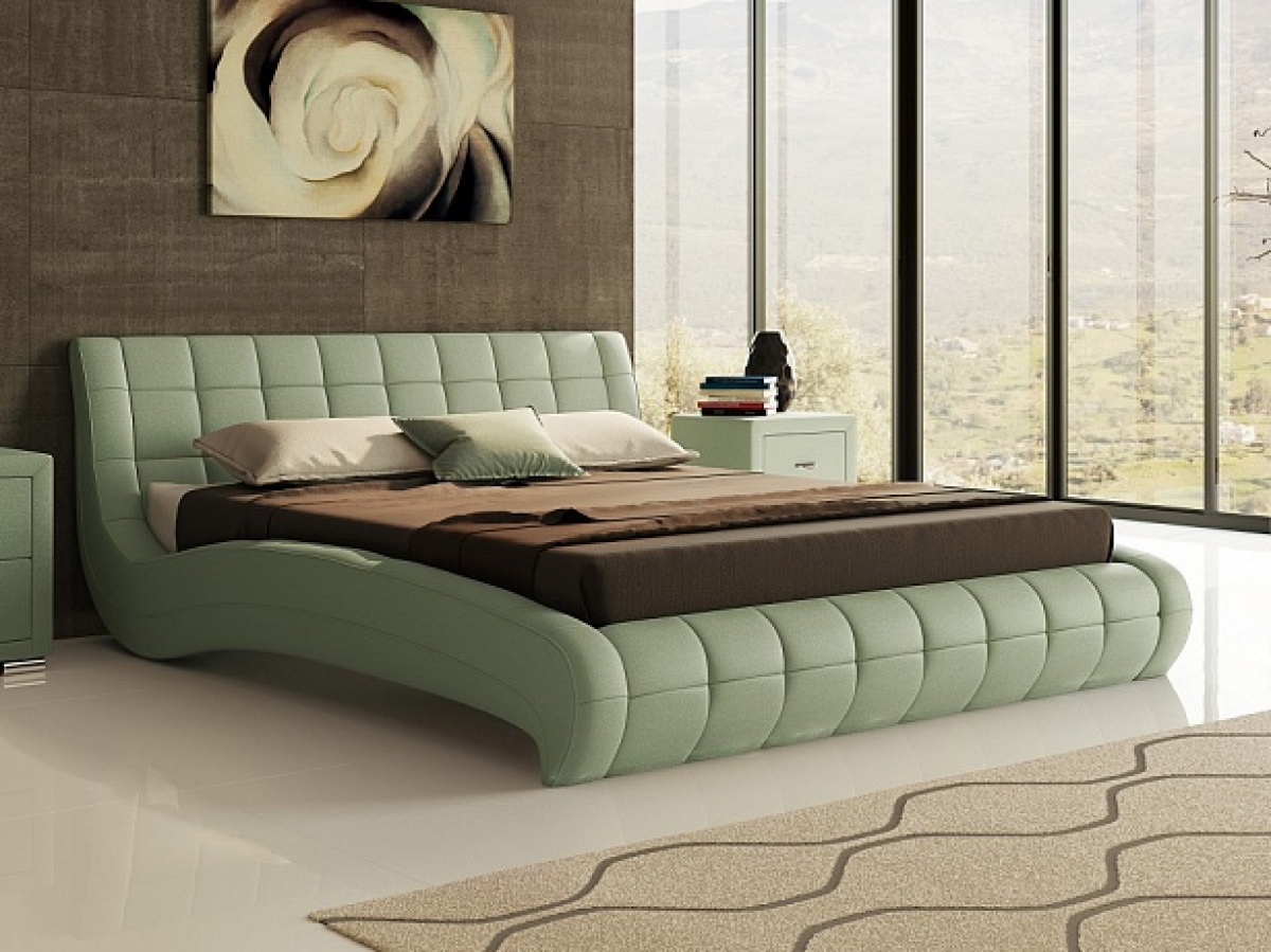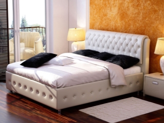 Hersteller bieten Betten an, die in fast jedes Interieur passen. Die Farben sind gesättigt und tief, Sie können ein Produkt mit einem matten Farbton und mit einem glänzenden Glanz nehmen. Polsterung kann hell, dunkel, natürliche Farben und schreiend "sauer" sein, was aus natürlichem Leder schwer zu erreichen ist.