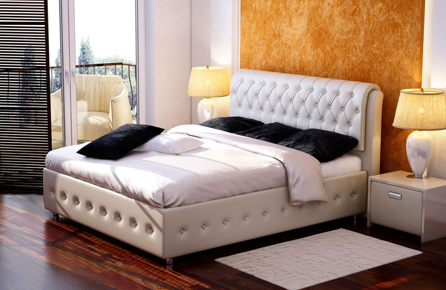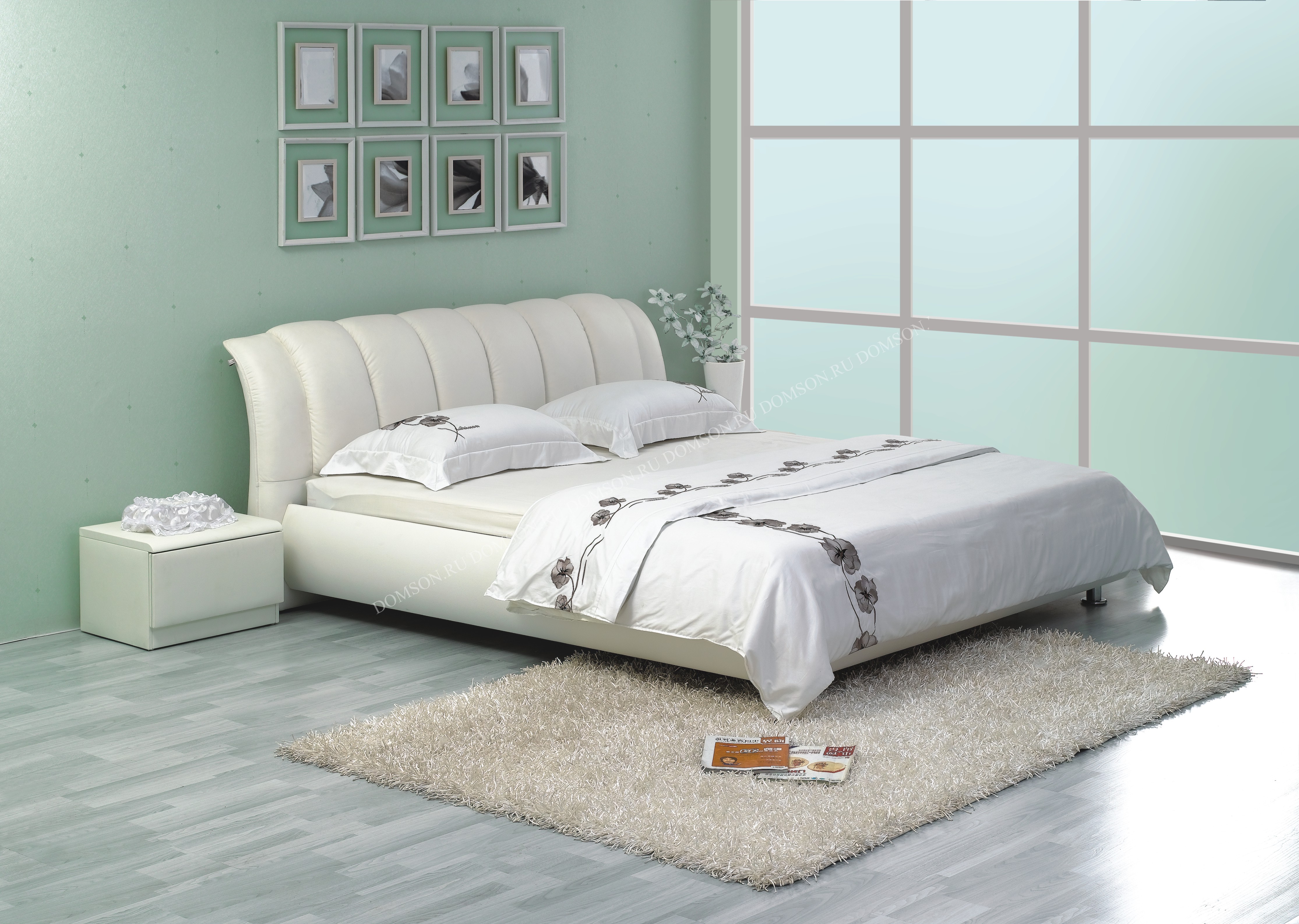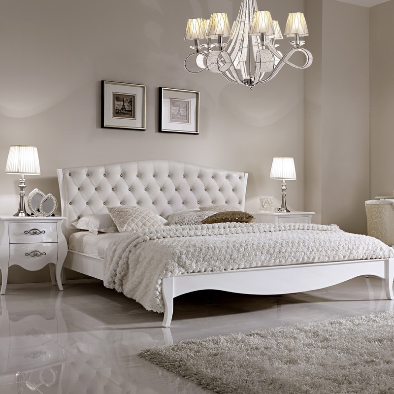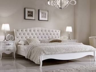 - Die weiße Farbe des Bettes ist eine mutige Bewegung. Solche Möbel müssen sorgfältig gepflegt werden, sonst wird ihr Aussehen bald nicht mehr ästhetisch sein. Allerdings sieht dieses Bett sehr "reich" aus.