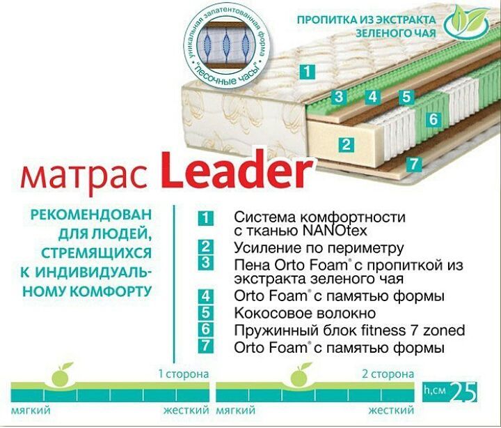 - "Führer". Ausgezeichnetes supermodernes Produkt mit der Funktion, sich an die Eigenschaften Ihres Körpers zu "erinnern". Es passt sich perfekt jedem Körper und jeder Schlafposition an und macht es noch komfortabler;