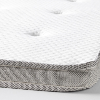 - Die wirtschaftlichste Option - "Talje". Es hat 5 Größen. Hergestellt aus Matratze, Polyester und Polypropylen. Der Füller ist Polyurethanschaum, er gibt der Matratze den Effekt der Weichheit. Dieses Produkt ist sehr elastisch und macht es so bequem wie möglich. Ergänzt sein Produkt - Matratze "Kungsminta".