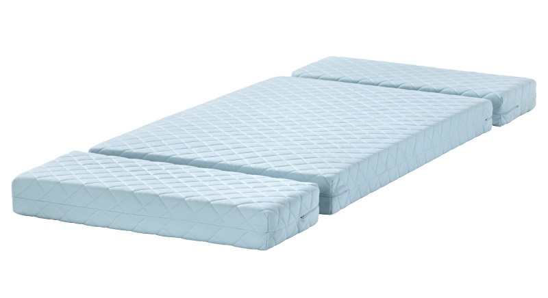 Eine gute Option - eine Klappmatratze auf dem Boden. Dies ist ein sehr funktionelles Element, das sehr einfach zu falten und zu komprimieren ist. Eine solche Anschaffung ist für diejenigen geeignet, die schnell und mit möglichst wenig Platz einen Schlafplatz organisieren möchten. Auch eine solche Matratze ist sehr praktisch, um eine Reise oder zum Beispiel in das Land zu unternehmen. Mit seiner Kompaktheit ist so etwas bequem, bequem, und in Ikea finden Sie unter diesen Matratzen auch orthopädische.