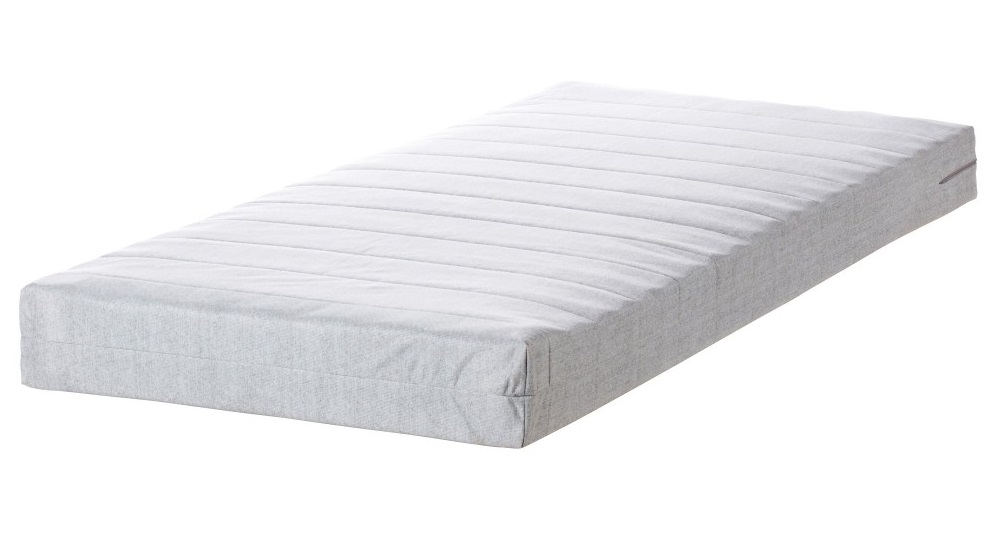 - Yomna - Matratze zu einem der attraktivsten Preise in Ikea. Bilateral, mit der Möglichkeit der Drehung, die sein Leben verlängert. Hersteller haben es mit einer praktischen Verpackung versehen - es wird auf einer Rolle verkauft. Eine solche Anschaffung wird durch den Kauf des Gestellbodens des Lura-Bettes perfekt ergänzt.