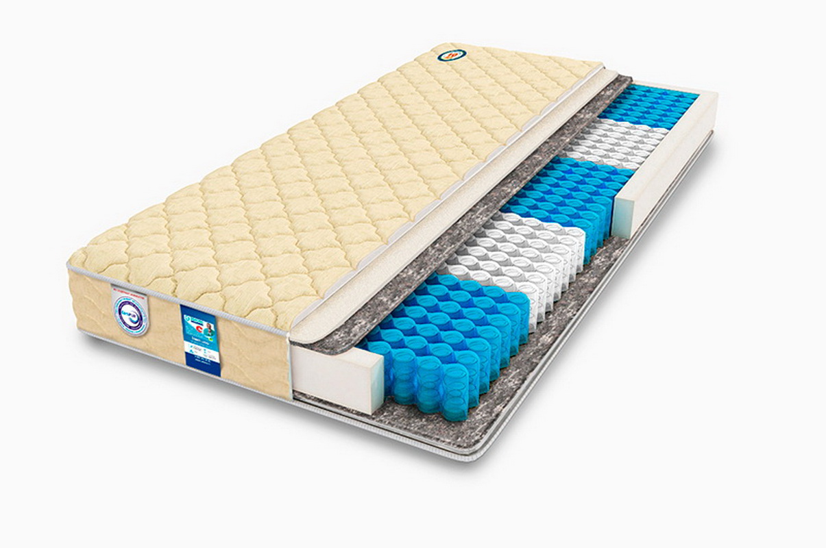 - Unabhängig. In solchen Blöcken ist jede Feder in einer separaten Abdeckung angeordnet. Die Abdeckungen sind aneinander befestigt und die Federn berühren sich nicht. Wenn eine Punktlast eine oder mehrere Federn komprimiert, bleibt der Rest fixiert. Je höher die Dichte der Federn auf 1 Quadrat. Je besser die orthopädische Qualität der Matratze und je höher ihre Kosten sind. All diese Daten sind im Pass zum Produkt enthalten.