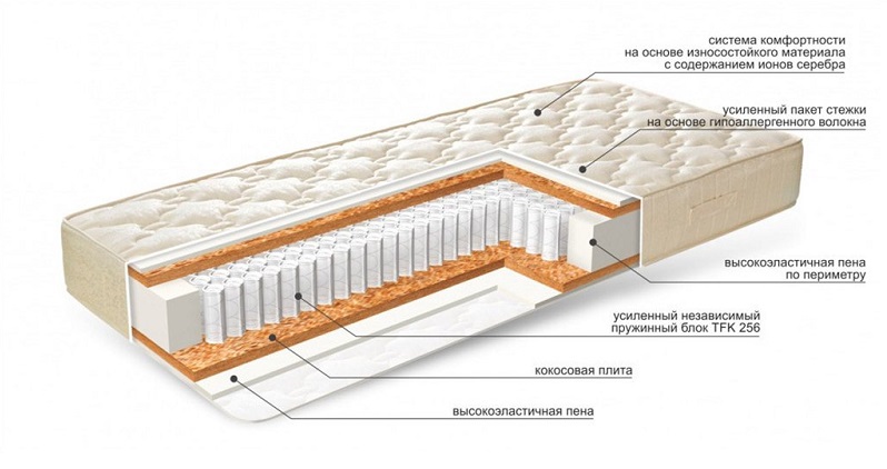 - "Standart". Dieses Modell hat ein Minimum an Steifigkeit und gehört zur Family-Serie. Ideal für ältere Menschen. In der Fülleinheit werden unabhängige Federn verwendet, wobei jedes Element in einer separaten Abdeckung angeordnet ist und unabhängig von den anderen arbeitet. Eine Filzschicht sorgt für eine ausgezeichnete Wärmeisolierung, während Kaltschaum ein angenehmes Gefühl auf dieser Probe erzeugt.