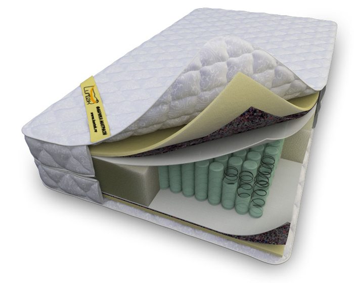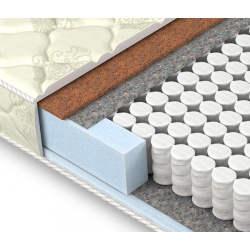 Spring Block bietet mittlere Steifigkeit und orthopädische Wirkung. Solche Eigenschaften werden durch eine kleine Menge Füllstoff und hohe Federn - 18 Zentimeter erreicht. Nach dem Schlafen auf einer solchen Matratze können Sie sicher sein, dass der Morgen wirklich gut ist. Pro Bett sind 100 Kilogramm zulässig.