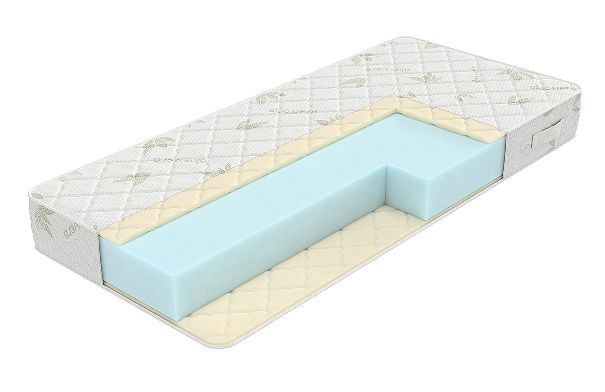 - "Flex Strong" ist ein Modell mit erhöhter Steifigkeit, das einer Last von bis zu 125 kg standhält. Es besteht aus einem monolithischen "Ormafom" -Block und mehreren Schichten desselben Materials, jedoch von geringerer Dichte. Verbiegt sich nicht unter schwerem Gewicht und verliert im Laufe der Zeit nicht an Form. Nach 5-6 Jahren wird es auch bequem schlafen, wie in den ersten Tagen.