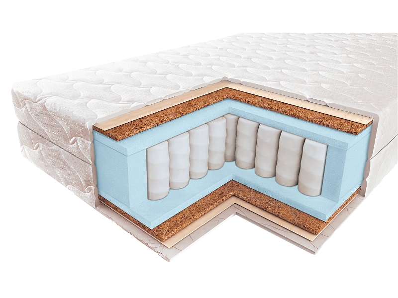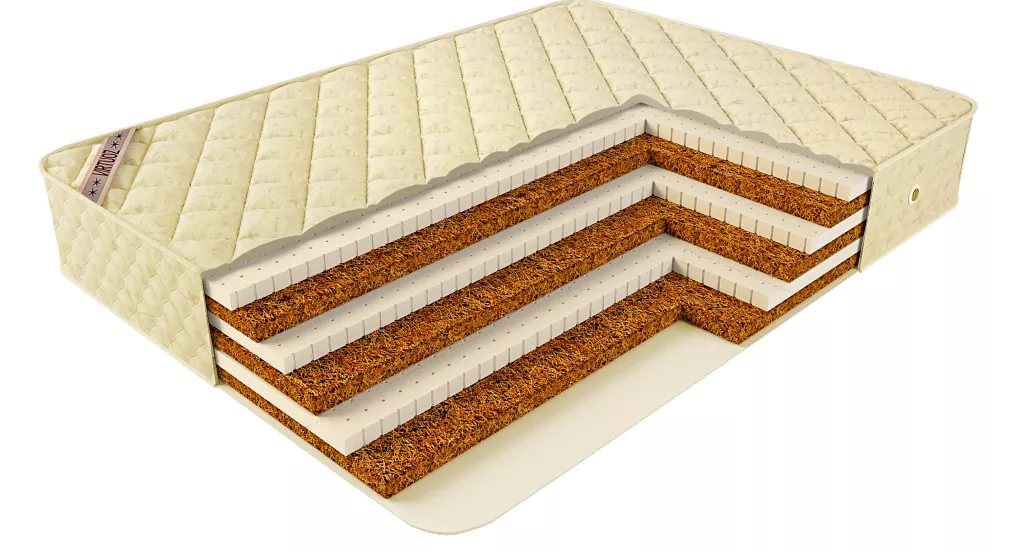 Springless sind ihnen nicht unterlegen. feste Matratzen aus hochwertigen Materialien. Kenner aller Natur werden sicherlich an Produkten interessiert sein, die mit natürlichem Kokosnuss-Kokos gefüllt sind. Dies ist der steifste Füllstoff, der für Menschen mit Rückenschmerzen geeignet ist.