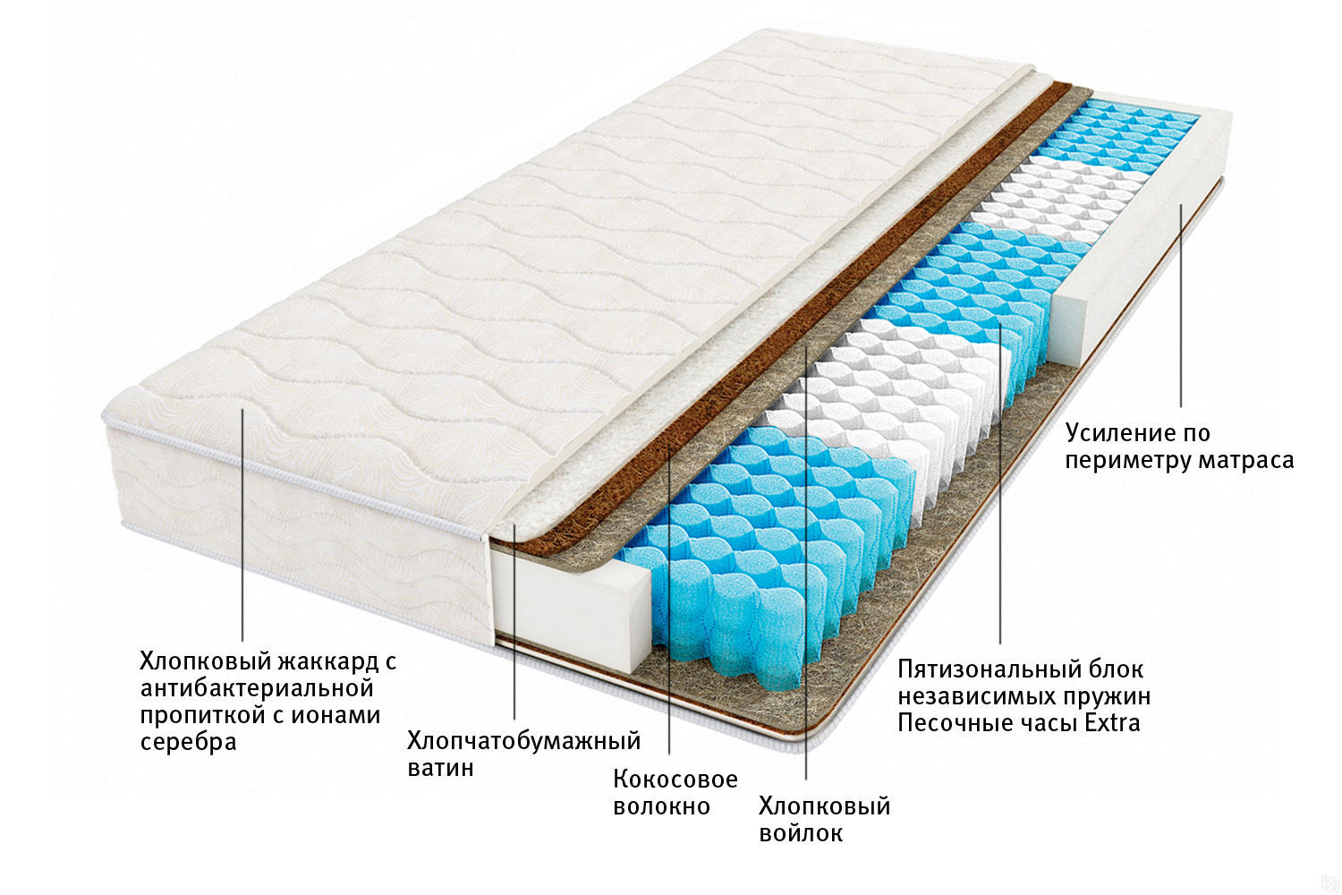 Der Zweck von orthopädischen Matratzen ist es, die Belastung auf die gesamte Wirbelsäule gleichmäßig zu verteilen, indem die Konturen des Körpers kopiert werden und die notwendige Steifigkeit erzeugt wird, so dass die Wirbelsäule selbst bei viel Gewicht nicht nachlässt. Dies ist möglich durch die Verwendung von Materialien mit verschiedenen Eigenschaften und Eigenschaften.