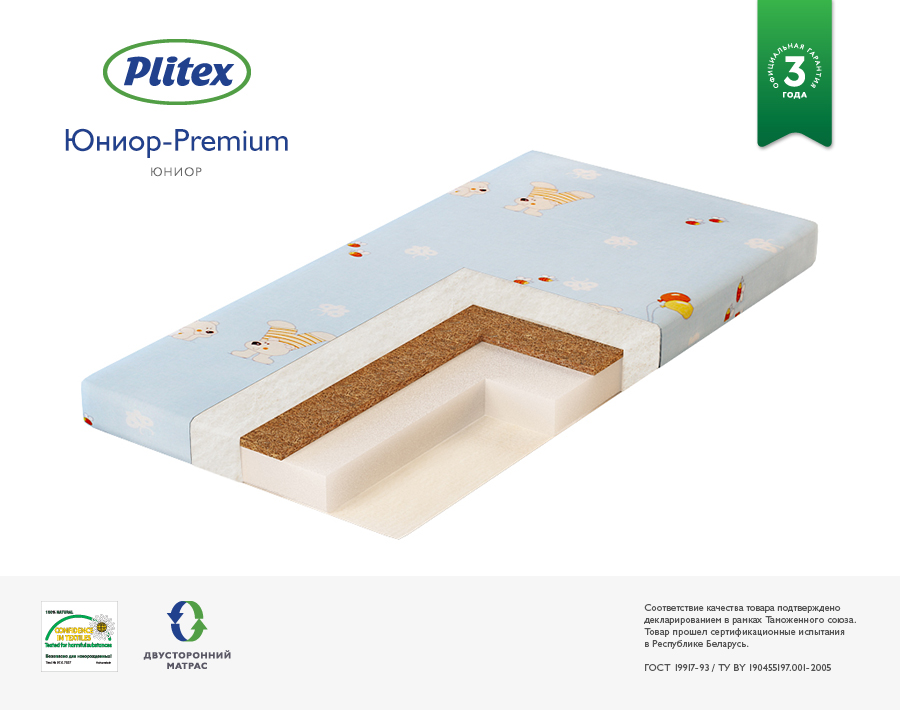 Die Materialien, aus denen die Matratze besteht, verdienen besondere Aufmerksamkeit. Schließlich hängt der angenehme Schlaf jedes Kindes von ihnen ab. Die Zusammensetzung der Produkte Plitex umfasst nur moderne hochwertige Komponenten. Sie sind von hoher Qualität, so dass Sie sich nicht um die Gesundheit Ihres Kindes sorgen müssen. Die wichtigsten Komponenten sind anatomische Latex, Airoflex-Baumwolle, Kokos Kokos, Airotek, Stress Free. Sie werden ihre Praktikabilität und Haltbarkeit schätzen.