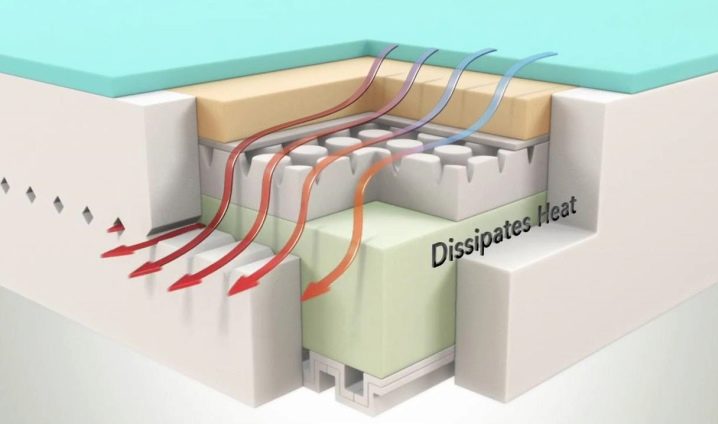 Die poröse Basis der Matratze reagiert sofort auf die Belastung. Wie oben erwähnt, passt sich eine bestimmte Struktur an die individuellen Parameter der Figur an. Der menschliche Körper hat eine konstante Temperatur. Unter seinem Einfluss wird ein spezieller Schaum weich und nimmt die Form eines Körpers an. Die Anpassung erfolgt somit reibungslos und sauber.