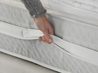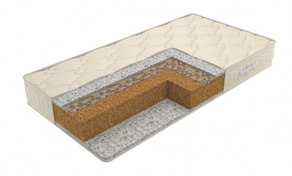 Ein zusätzlicher Vorteil ist das Vorhandensein von dekorativen Griffen mit belüfteten Eigenschaften, die Luft frei im Inneren zirkulieren lassen. Zusammen mit dem Kokos in der Matratze verwendet Hollow Fiber. Der Bezug mit tiefem, konvexem Stich besteht aus Strick- oder Jacquard-Baumwolle.