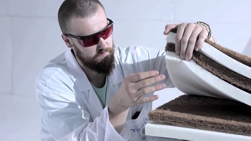 Eine der Oberflächen der Matratze hat notwendigerweise eine Masche auf einem Stoffbezug, der aus Baumwolle besteht. Solches Material hilft der richtigen Luftzirkulation, fördert die Verdunstung von Feuchtigkeit, Schweiß, hypoallergenen.