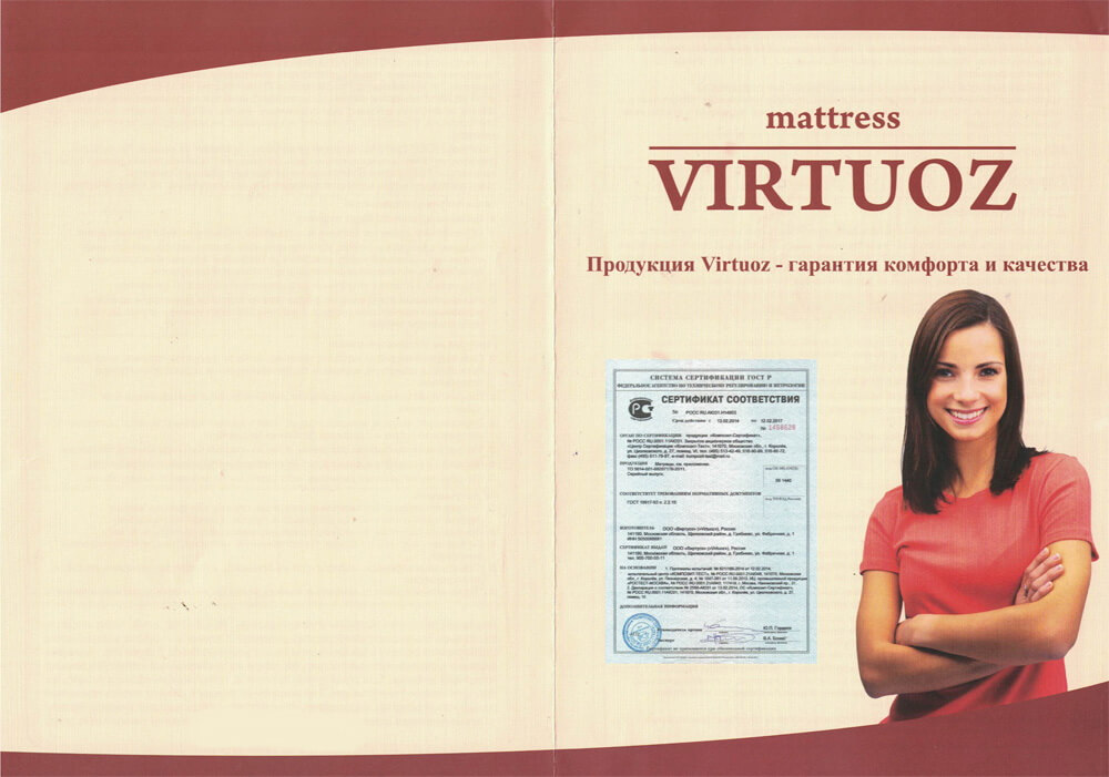 "Sleep virtuoso" ist eine Fabrik, die 2005 auf den Freiflächen von Moskau auftrat. Sie ist spezialisiert auf die Herstellung verschiedener Produkte für den Schlaf: Kissen, Decken und natürlich Matratzen. Das Unternehmen hat eine eingetragene Marke, daher ist jede Kopie eine strafbare Handlung.