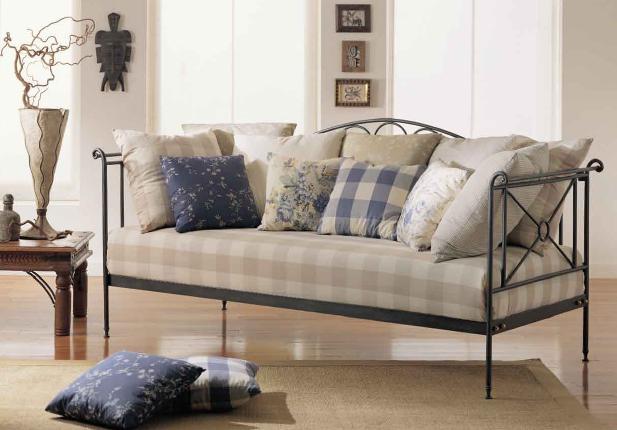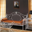 - Schlafsofa Sie können zu einem Preis von 12.500 Rubel abholen. Natürlich wird es nicht nur aus Eisen sein, sondern wird mit Beilagen ergänzt. Meistens wird bei der Herstellung eines Sofas Holz verwendet, Glaseinsätze sind sehr selten.