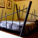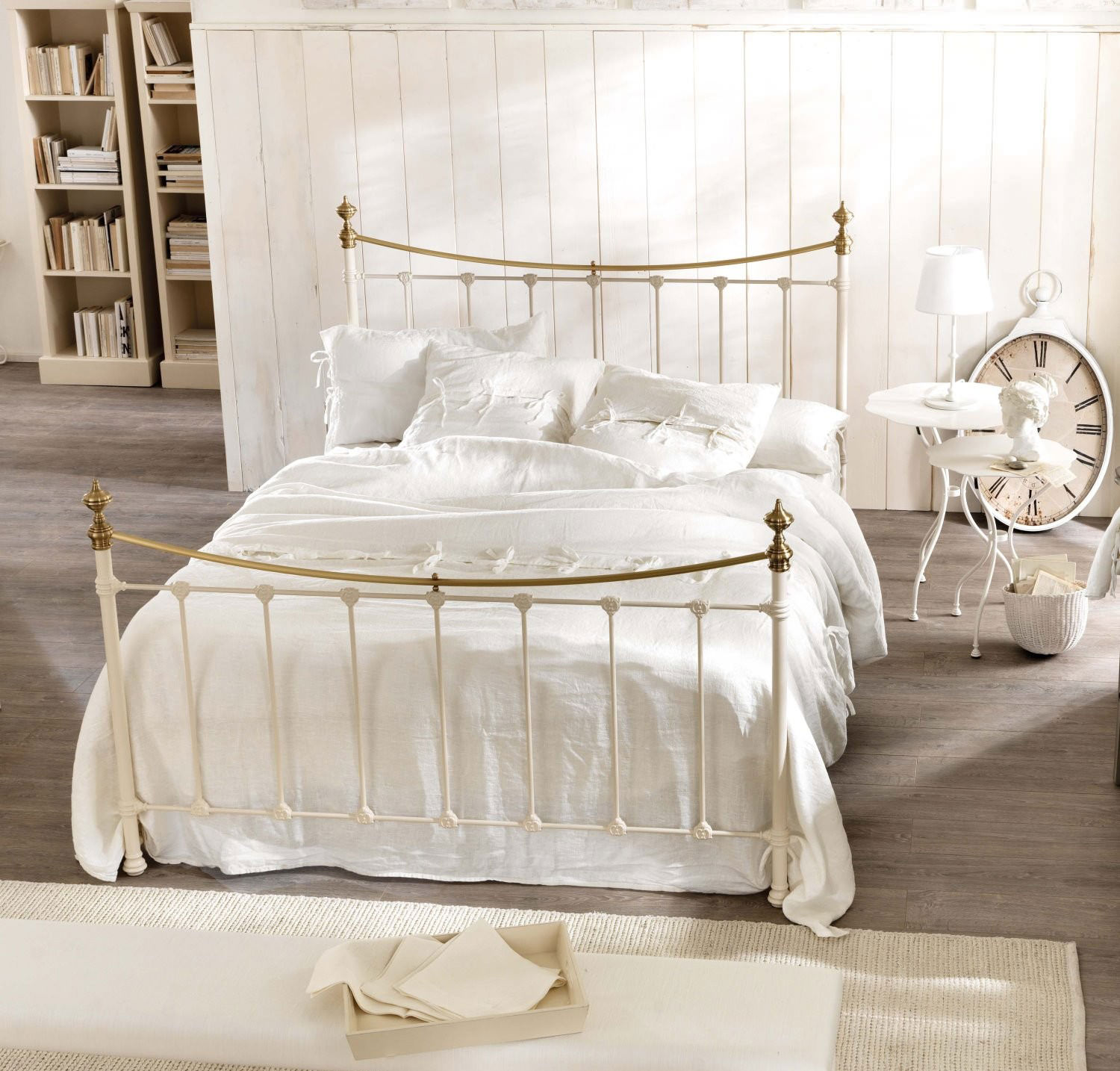 Rustikaler Stil erfordert auch Vorsicht bei der Auswahl eines Eisenbettes. Wie Sie wissen, werden hier am häufigsten Holzproben verwendet, so dass die Wahl des Eisenäquivalents eine entmutigende Aufgabe sein kann. Achten Sie auf die alten Modelle, die auf Flohmärkten erworben werden können. Meistens enthalten sie die Reste der ursprünglichen Farbe. Die Wiederherstellung des Bettes und die Installation einer neuen Basis kostet Sie wahrscheinlich nicht mehr als den Kauf eines neuen Bettes, und das Ergebnis wird alle Erwartungen übertreffen. Wenn Sie das Bett schließlich in der entsprechenden Farbe neu streichen, erhalten Sie ein völlig einzigartiges Möbelstück.