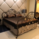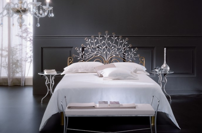 Hier sind Beispiele für Designerbetten, deren Kopfteil und Fußteil mit der Kunst des Schmiedens hergestellt werden. Achten Sie darauf, wie schön eine solche Box vor dem Hintergrund luxuriöser klassischer und moderner Stile aussieht. Dies zeigt deutlich, wie sich ein elegantes Kunstwerk, wie ein handgefertigtes schmiedeeisernes Bett, mit verschiedenen Designs im Innenraum kombinieren lässt.