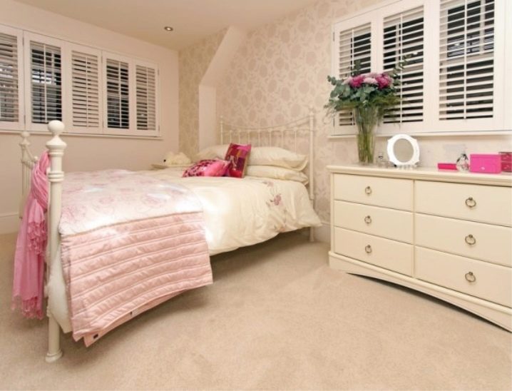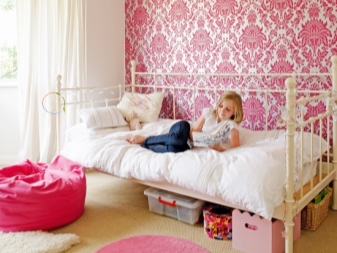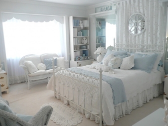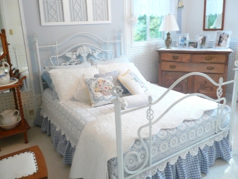 Für romantische Stilistiken hingegen ist ein leichter Abrieb ein charakteristisches Merkmal. Helle Betten sind perfekt für solche Innenräume, sie ermöglichen es Ihnen, dem ganzen Raum eine Atmosphäre von Leichtigkeit und Leichtigkeit zu geben.