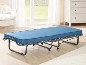 - Ein anderer gewöhnlicher Gast in gewöhnlichen Häusern ist eine Klappeisenkonstruktion, um es einfach auszudrücken, Klappbett. Sie können einzeln oder doppelt sein. Solch ein Klappbett kann in jeder unvorhergesehenen Situation helfen, sei es die Aufschlüsselung Ihres Bettes im Schlafzimmer oder die Ankunft von Verwandten. Folding Modelle sind in der Regel mit einem Panzer-plattierten Mesh an der Basis, die sie in eine knarrende und nicht sehr bequeme Option macht.