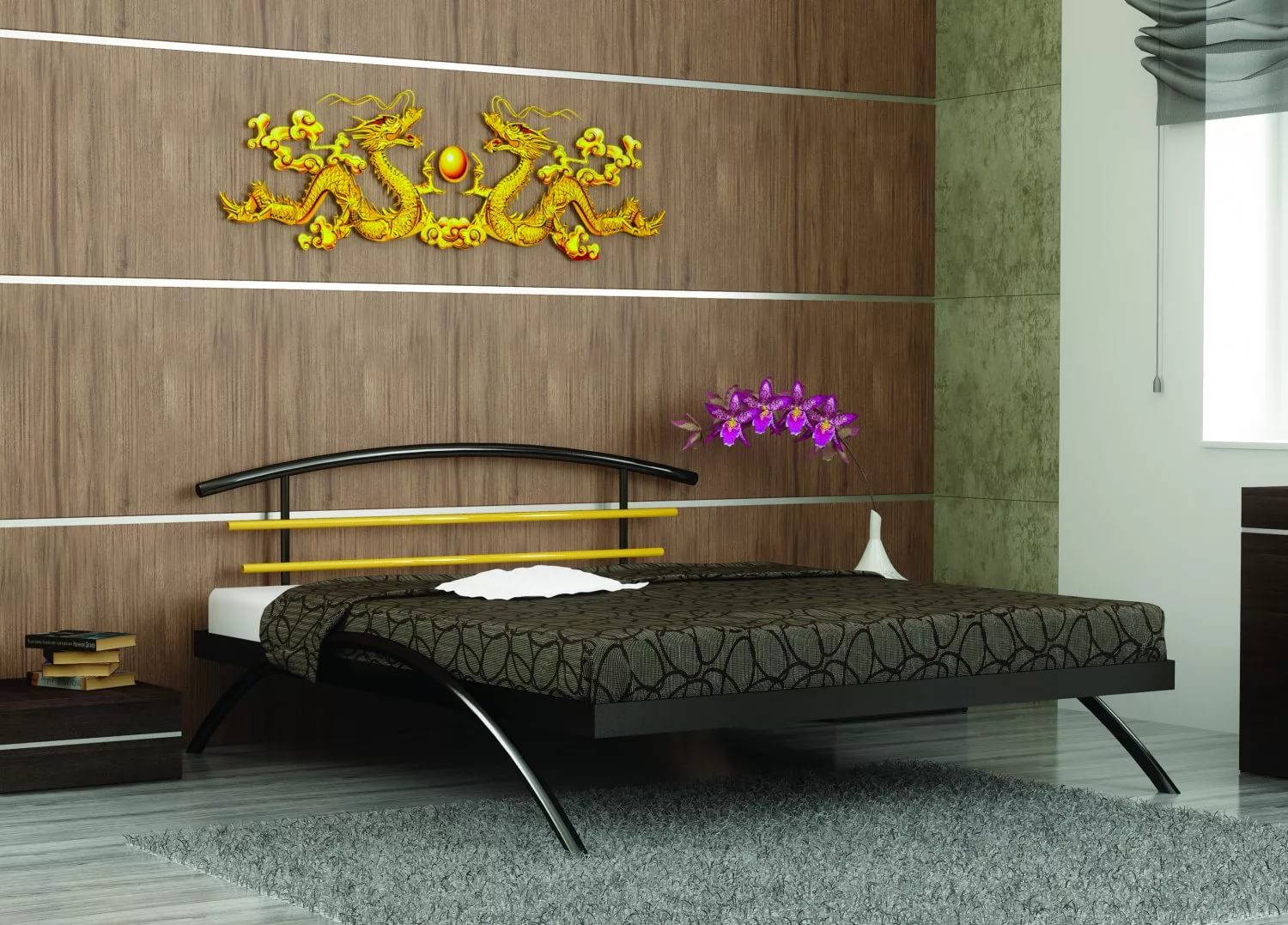 - Das Bett aus Metall kann unter jedem Interieur abgeholt werden.
