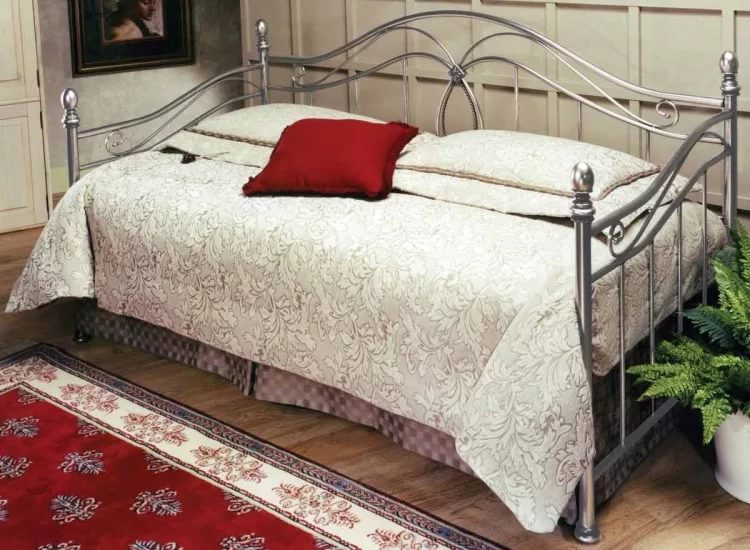 - Häufige Wahl für kleine Schlafzimmer - Bettsofa auf Metallrahmen. Der Kauf dieses Möbelstücks spart Platz, ohne die Bequemlichkeit zu verlieren. Es wird oft auch in Schlaf- und Wohnzimmern gekauft und dient gleichzeitig als Sofa. Normalerweise wird ein solches Bett sofort mit einer Matratze gekauft, und es berücksichtigt auch den "Sofa" -Zweck. Orthopädische Matratzen haben diese Funktion nicht.