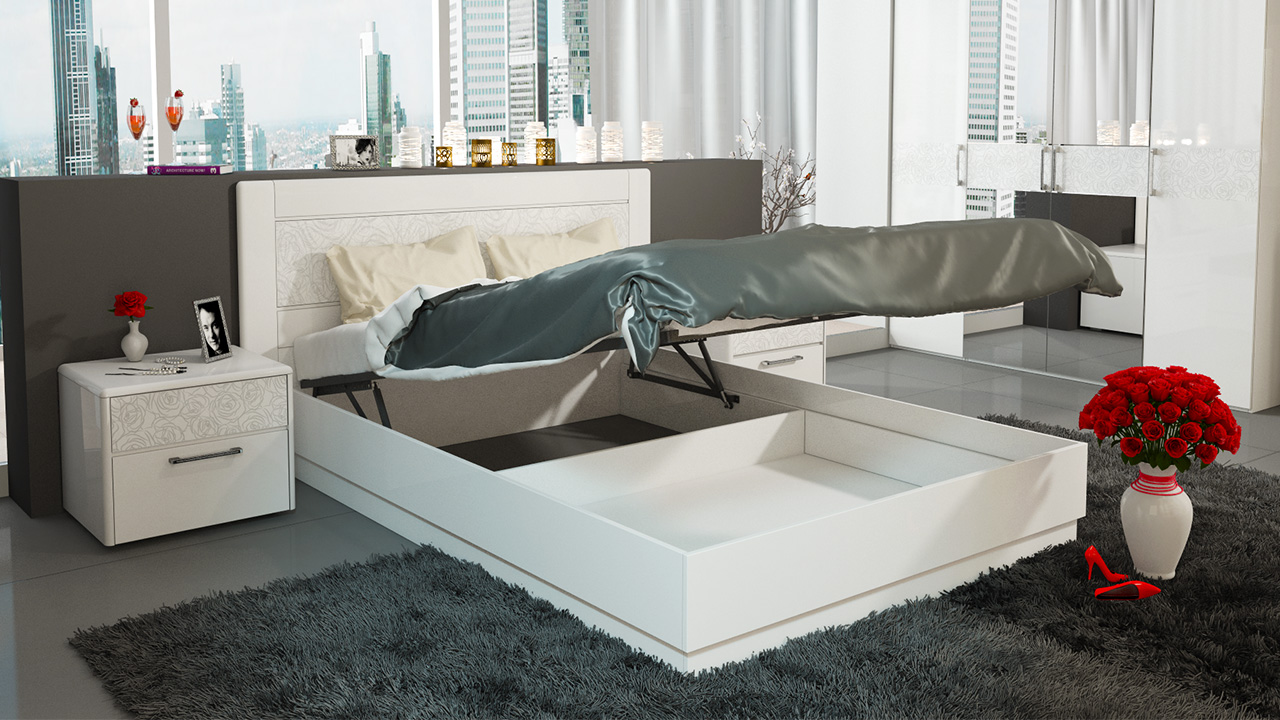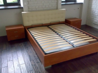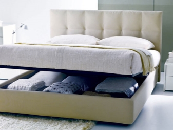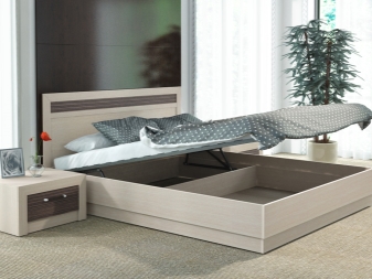 Das beliebteste Modell, bei dem der Rahmen zusammen mit der Matratze hochgezogen wird, gibt den Raum frei, in dem sich Fächer für Wäsche befinden. Es werden auch orthopädische Betten hergestellt, bei denen Sie den Neigungswinkel des Gestells in verschiedenen Teilen ändern können, so dass eine Person das Produkt an seine Bedürfnisse anpassen kann.