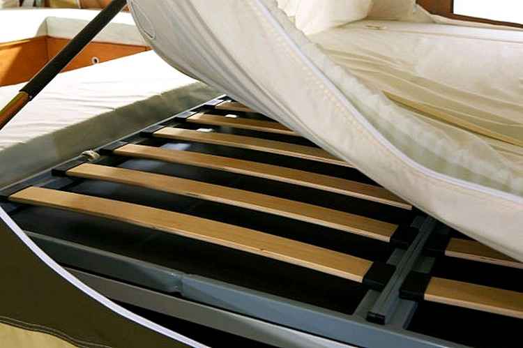 Die beste Option ist ein orthopädisches Bett, dessen Basis aus Lamellen besteht. - Bretter aus Holz, die gerade oder leicht gebogen sein können. Wenn Sie ein Bett zusammenstellen, wird eine Matratze darauf gelegt, die ein entscheidendes Element für die Schaffung der bequemsten Ruhe sein sollte.