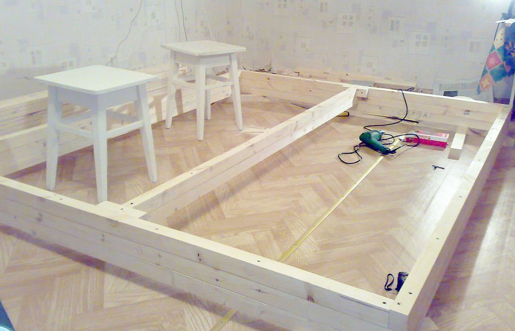 Nach demselben Algorithmus wird das Bett mit einer unabhängigen orthopädischen Basis zusammengebaut.