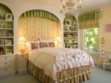 - Drapiert - Dieser Typ hat eine große Anzahl von Falten, die dadurch entstehen, dass der Stoff ein wenig gerafft ist. Dieses Modell sieht sehr feminin aus, daher wird es oft verwendet, um das Schlafzimmer eines jungen Mädchens zu entwerfen. Es ist auch relevant für Country-Stil.