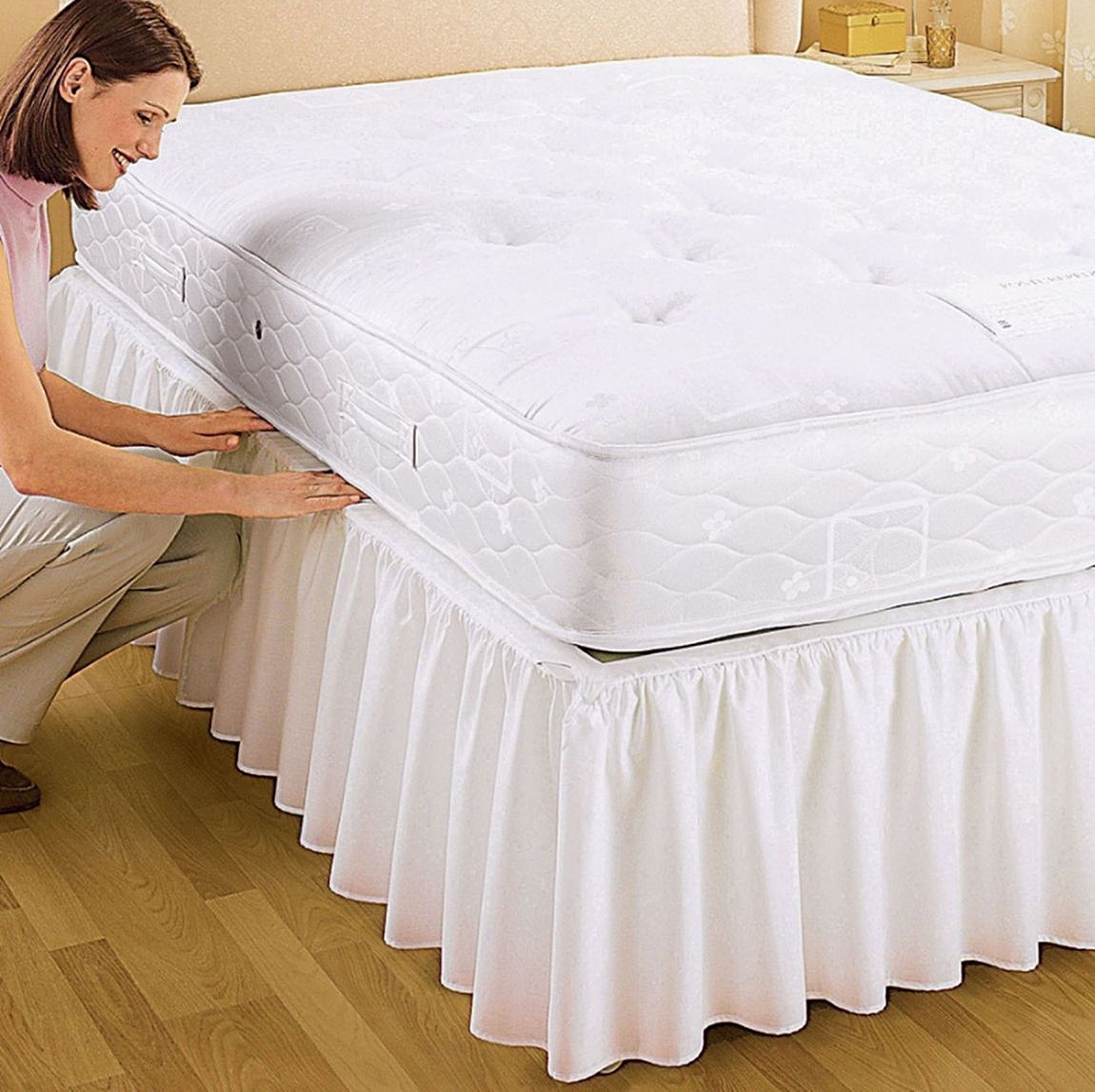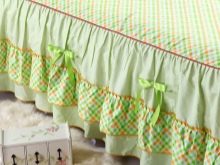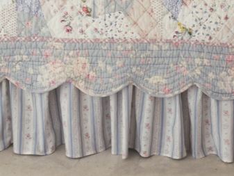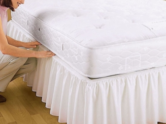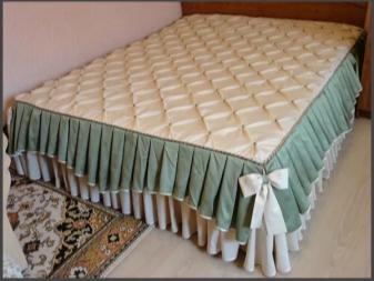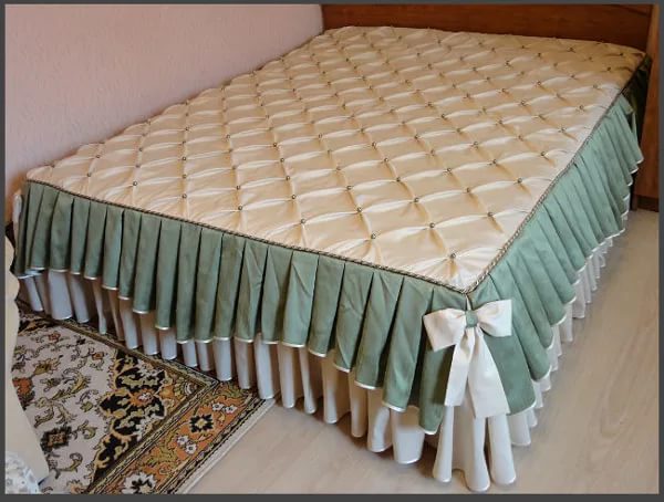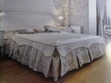 Wenn die Seitenwände des Rahmens eine große Höhe haben und die Matratze teilweise oder vollständig im Rahmen ist, verwenden Sie den "Rock". Einteilige Decke mit einem Volant kann für eine Vielzahl von Bettoptionen verwendet werden.