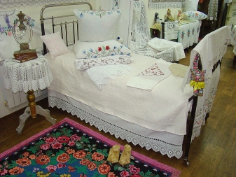 Damals wurde ein Volant aus praktischer Sicht angewendet. Im Gegensatz zu modernen Modellen unterschieden sich die Betten unserer Großmütter in angemessener Höhe und konnten eine Höhe von bis zu einem halben Meter erreichen.Diese hohe Möbel verwendet kein Zufall, und so viel wie möglich über dem Boden zu schlafen, wo die Luft war etwas wärmer.