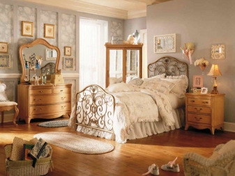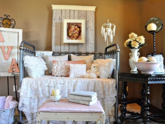 - Farbgestaltung - helle Farben können sich auf das Bett konzentrieren. Wenn Sie einen "Rock" aus einem hellen Farbton erhalten, zum Beispiel weiß, rosa, cremefarben, dann können Sie sogar die massivsten Möbel luftiger und leichter machen.