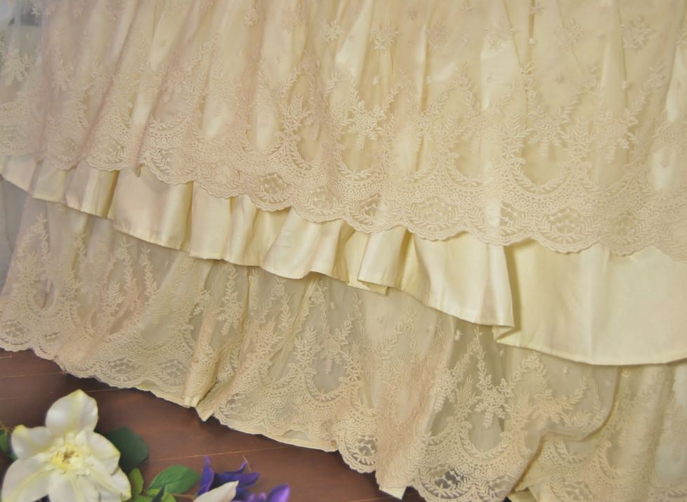 Ein Volant ist eine Rüsche, die verwendet wird, um ein Bett zu schmücken, es umrahmt die untere Kante des Bettes. In manchen Ländern wird es auch "Rock" genannt. Dieses Element des Dekors ist seit der Antike bekannt, sogar unsere Großmütter und Urgroßmütter nutzten es, um ein Bett zu entwerfen.