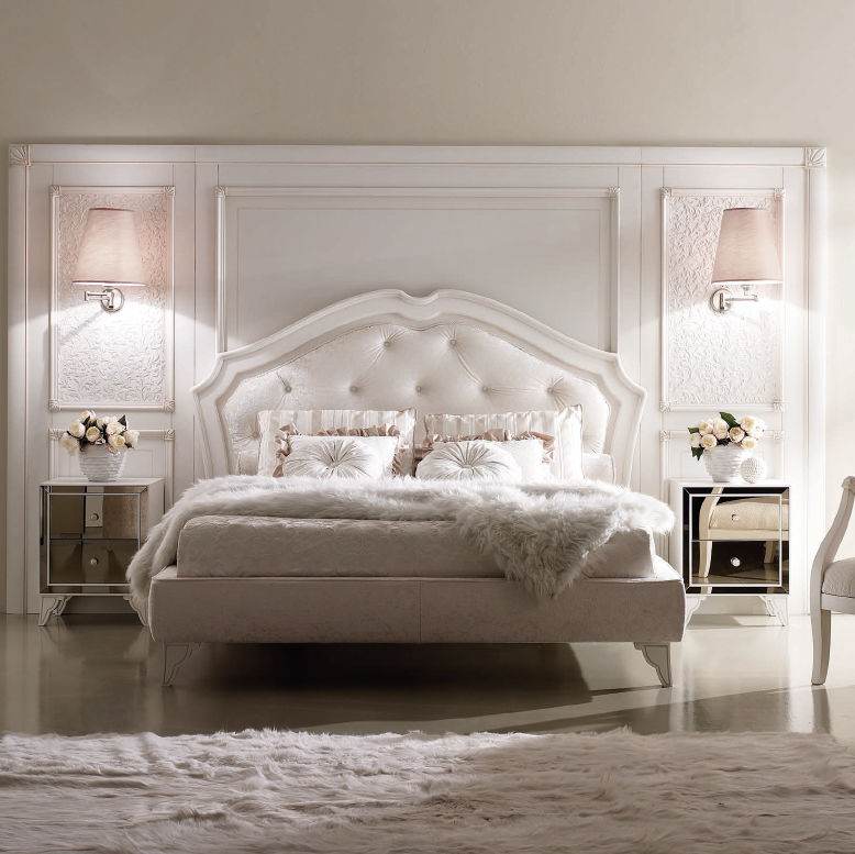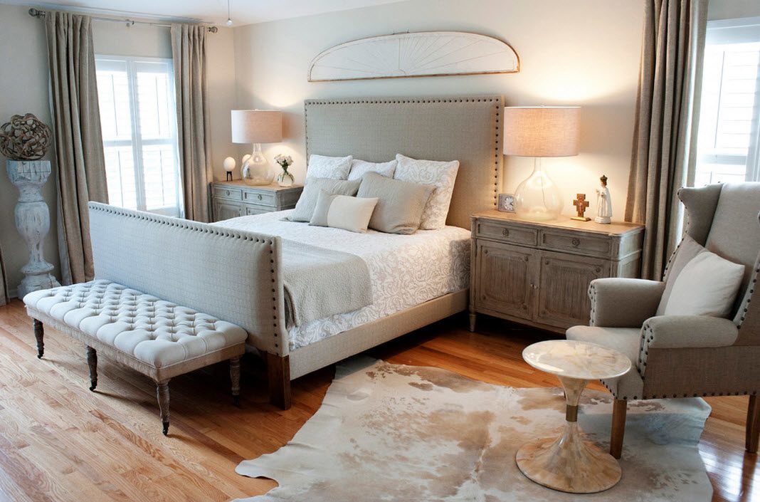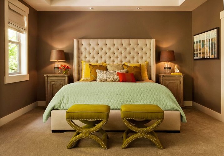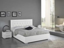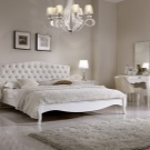 - Design. Möbel sollten das Dekor harmonisch ergänzen und zu einem Design verschmelzen. Daher ist es wichtig, ein Modell zu wählen, das zu Ihrem Stil passt. Es ist jedoch wichtig, sich daran zu erinnern, dass je massiver der Rücken, desto mühsamer der Schläfer scheint. In einem geräumigen Schlafzimmer sieht dieses Bett harmonisch aus. Wenn der Raum klein ist, ist es besser, ein Modell mit einem Kopfteil mittlerer Höhe zu wählen oder die Anzahl anderer Möbel und Accessoires zu minimieren. Wenn das Bett das einzige Objekt im Raum ist, wird es nicht das Gefühl geben, "überfüllt" zu sein. Sie können das Dekor mit einem flauschigen Teppich, schönen Vorhängen und ausdrucksstarken Lampen ergänzen. Ein kleiner Nachttisch ist akzeptabel. So werden Sie im Haus eine gemütliche und stilvolle Ecke von Komfort und Luxus schaffen.