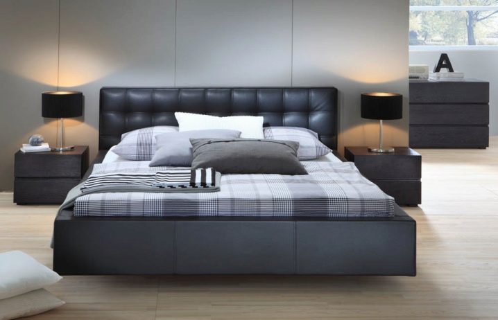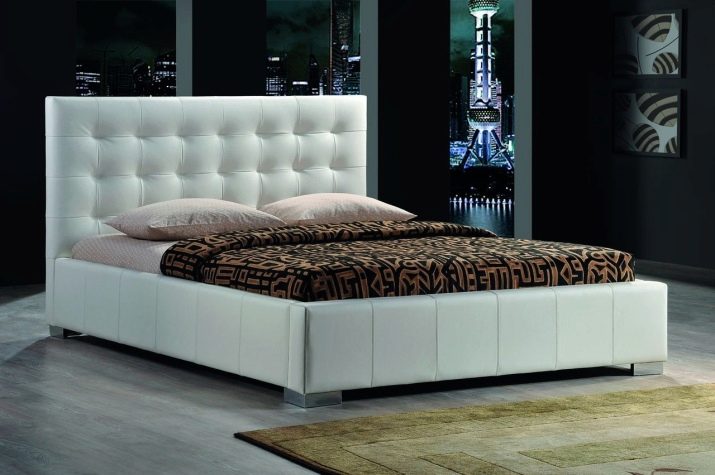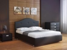 Die meisten Ledermodelle sind im Stil von Minimalismus und Hightech gefertigt. Die Rückseite dieses Bettes kann von beliebiger Form sein - rechteckig oder abgerundet. Das Bett selbst kann auch anders aussehen.