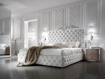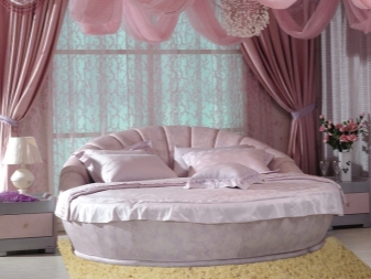 Kenner der strengen Eleganz können die traditionelle rechteckige Version wählen. Diejenigen, die glatte Linien bevorzugen, werden gekrümmte Modelle mögen.Skandalöse, leicht fantastische Umgebung kann ein Bett im Schlafzimmer mit der Wirkung von "Segel" und Beleuchtung schaffen. Nicht weniger interessant sind die Modelle einer runden Form.