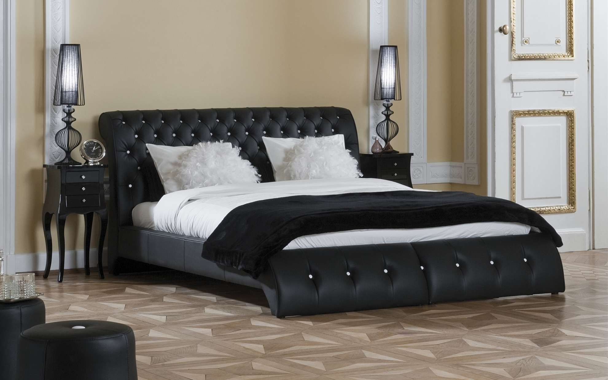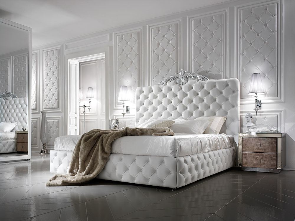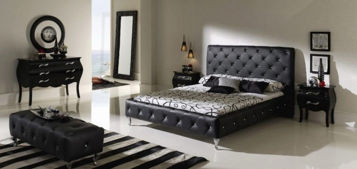 - Stil Betten mit Lederbezug, auch ohne zusätzliches Dekor, wirken elegant, elegant und stilvoll.Und Metallteile oder funkelnde Strasssteine verleihen den Möbeln einen besonderen Chic. Die Vielfalt der Ausführungsvarianten erlaubt es, dass sich solche Betten harmonisch in jedes Interieur einfügen. Darüber hinaus bieten viele Hersteller an, einen Satz kompletter Sets für einen Schlafplatz zu erwerben. So können Sie das Schlafzimmer im gleichen Stil einrichten und eine ideale Atmosphäre schaffen.