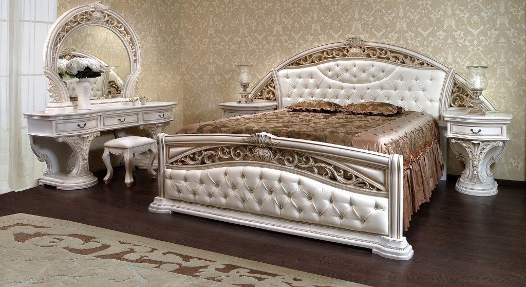 Fans von Möbeln im Renaissance-Stil können sich auch mit einem Lederbett erfreuen. Solche Optionen haben eine reiche Ausstattung. Dies sind geschnitzte Beine, dreidimensionale Muster und sogar Vergoldung. In Kombination mit Lederbezügen sehen solche Möbel einfach luxuriös aus und ermöglichen es Ihnen, die Atmosphäre echter Königskammern im Schlafzimmer nachzuempfinden.