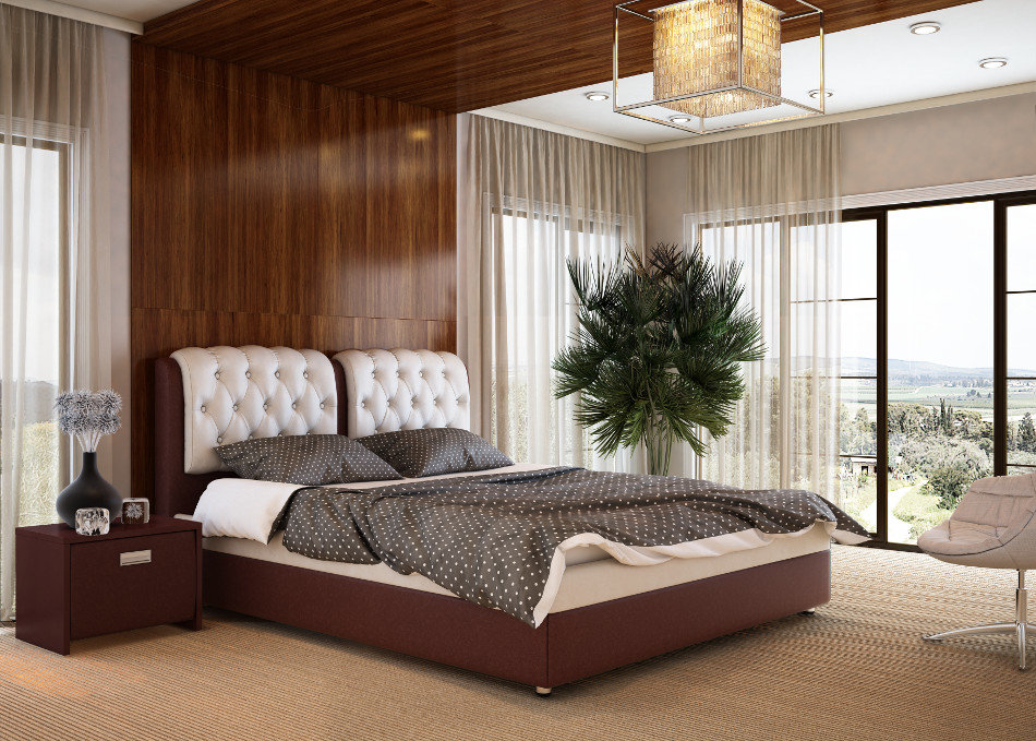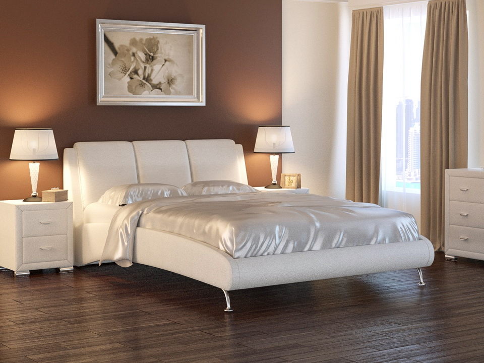 - Farbe. Ein Bett mit einem Kopfteil aus weißem Leder kann den Raum bei jeder Beleuchtung heller machen. Weiße Farbe gilt als eine der stilvollsten im Inneren. Solche Möbel erweitern optisch den Raum, füllen ihn mit Frische und Ruhe.Besonders eindrucksvolle weiße Möbel sehen auf dem Hintergrund dunkler Wände aus. Das schwarze Bett ist eine weitere moderne und stilvolle Option. Solch ein Bett wird auf einem hellen Hintergrund ausdrucksvoller aussehen. Das beige Modell wird Liebhaber von ruhigen und kontrastarmen Innenräumen begeistern. Sie bringt einen besonderen Komfort in den Raum und verdünnt die Atmosphäre mit zarten Farben. Lederbett in Grautönen ist eine universelle Lösung für ein zurückhaltendes, minimalistisches Interieur. Braune Farbe sieht edel und elegant aus. Und Rot ist eine mutige Wahl der Liebhaber von satten Farben und schockierend.